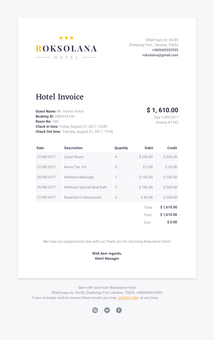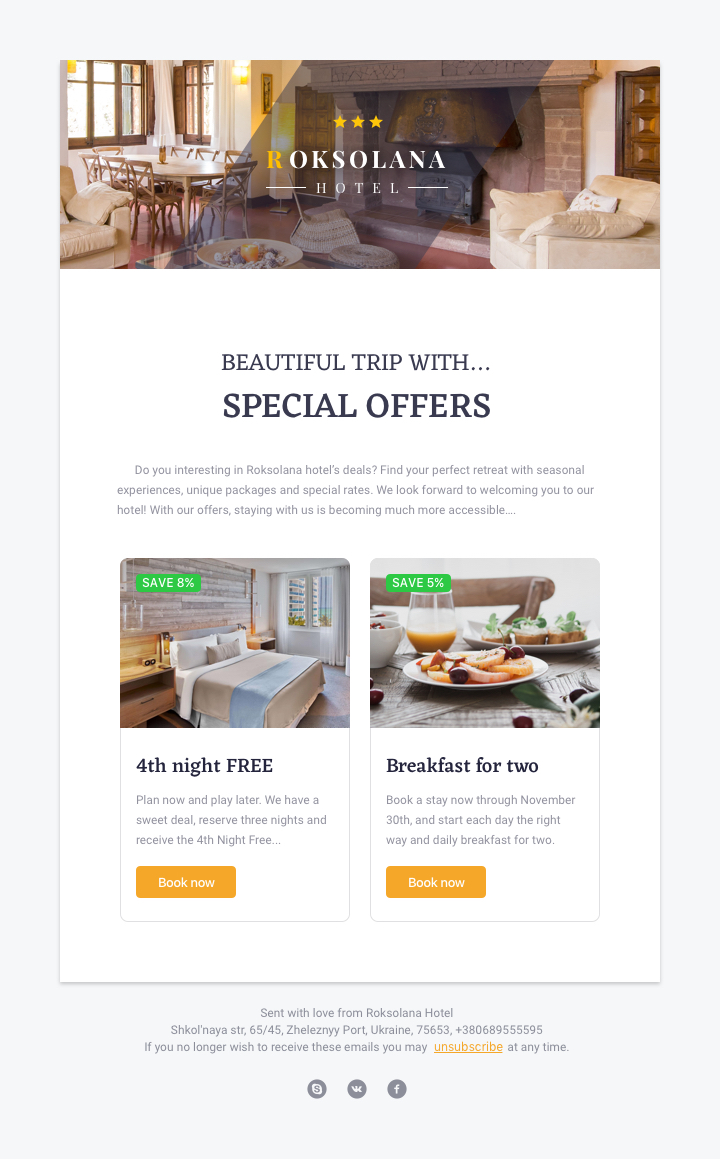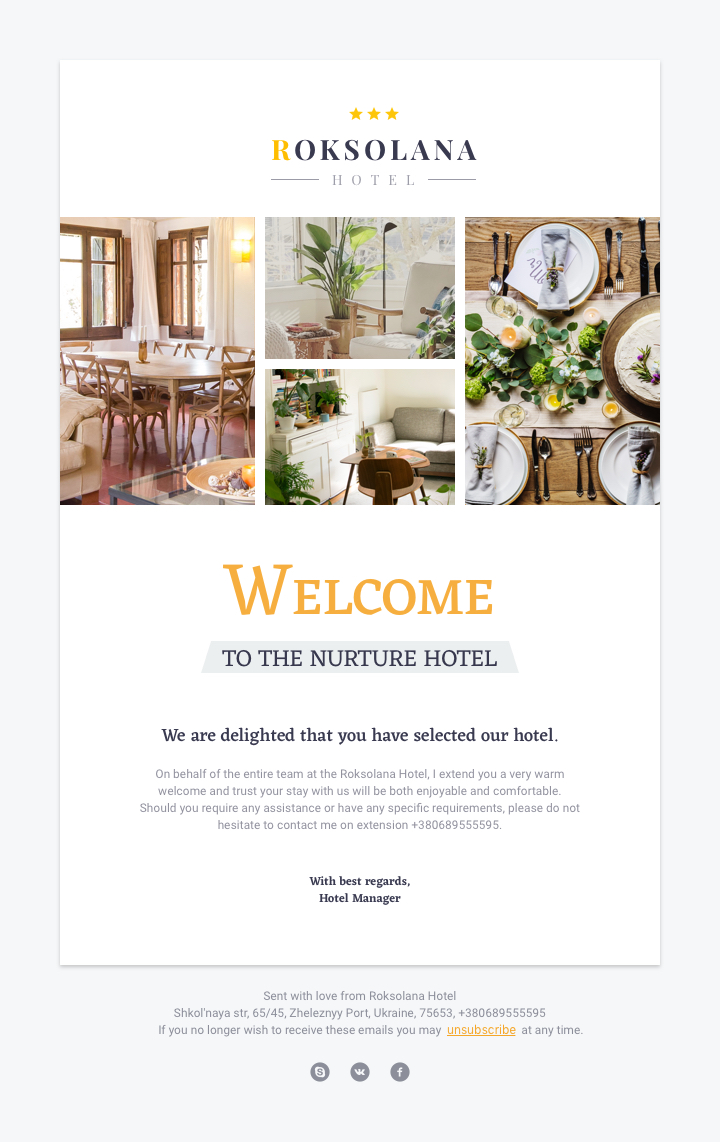 This project is a set of emails designed for the hotel. The main requirement is responsive layout and main
