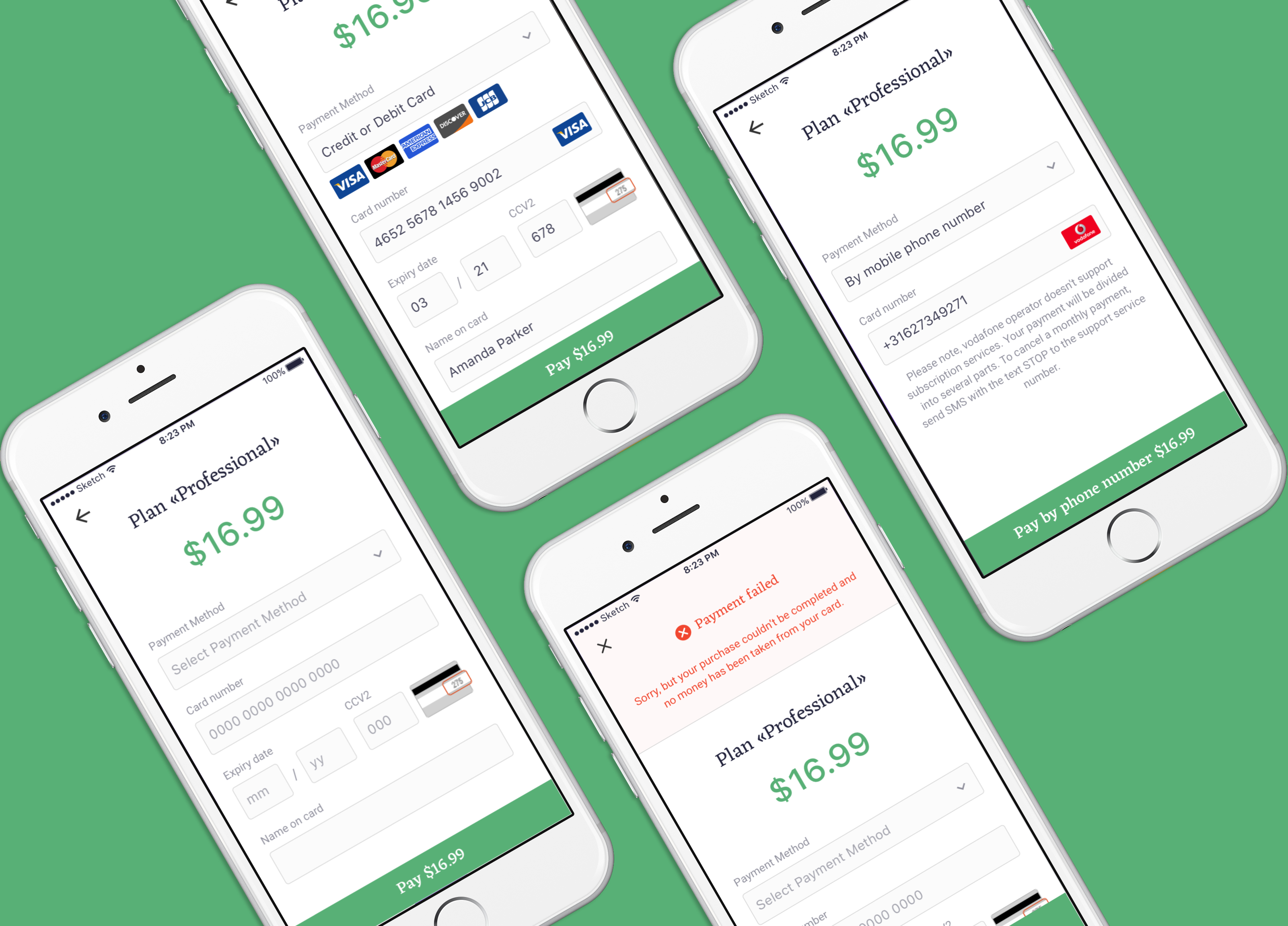 The design developed for all possible errors, it is easy to use. Design can be adapted to any type of sales.