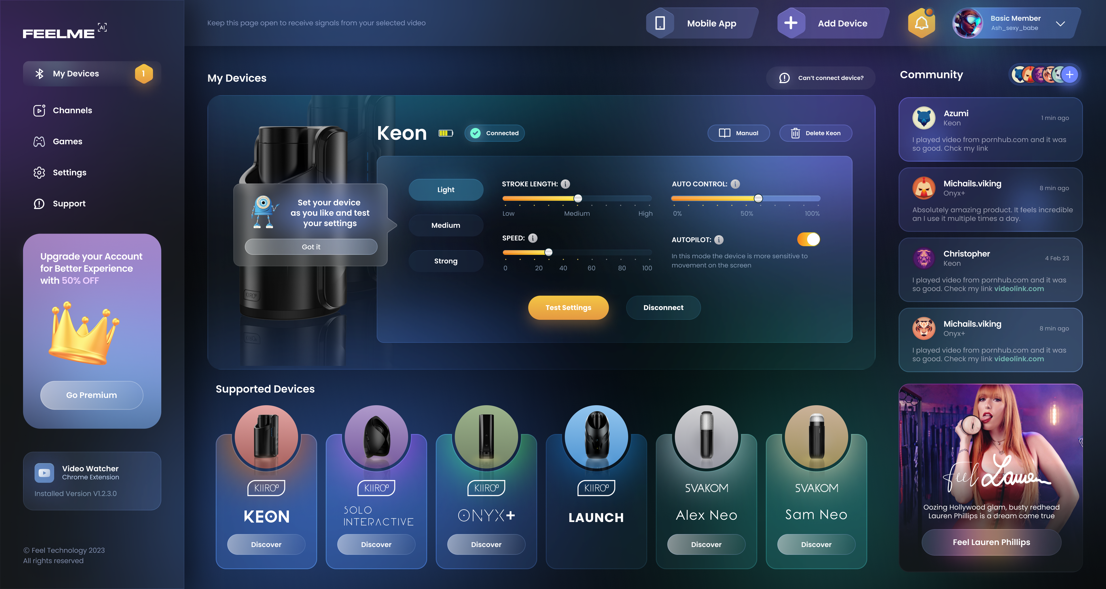 monthly premium on adult sites that provide interactive content. FeelMe was developed to turn an entire website’s