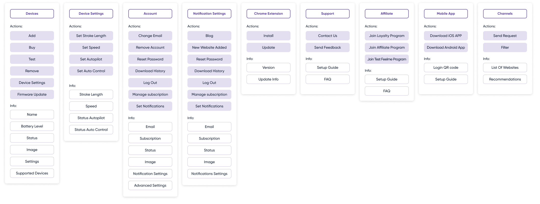 I combine all the information and actions that are going to be embed into Feelme AI site.